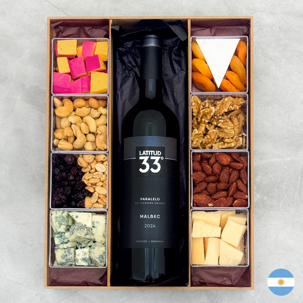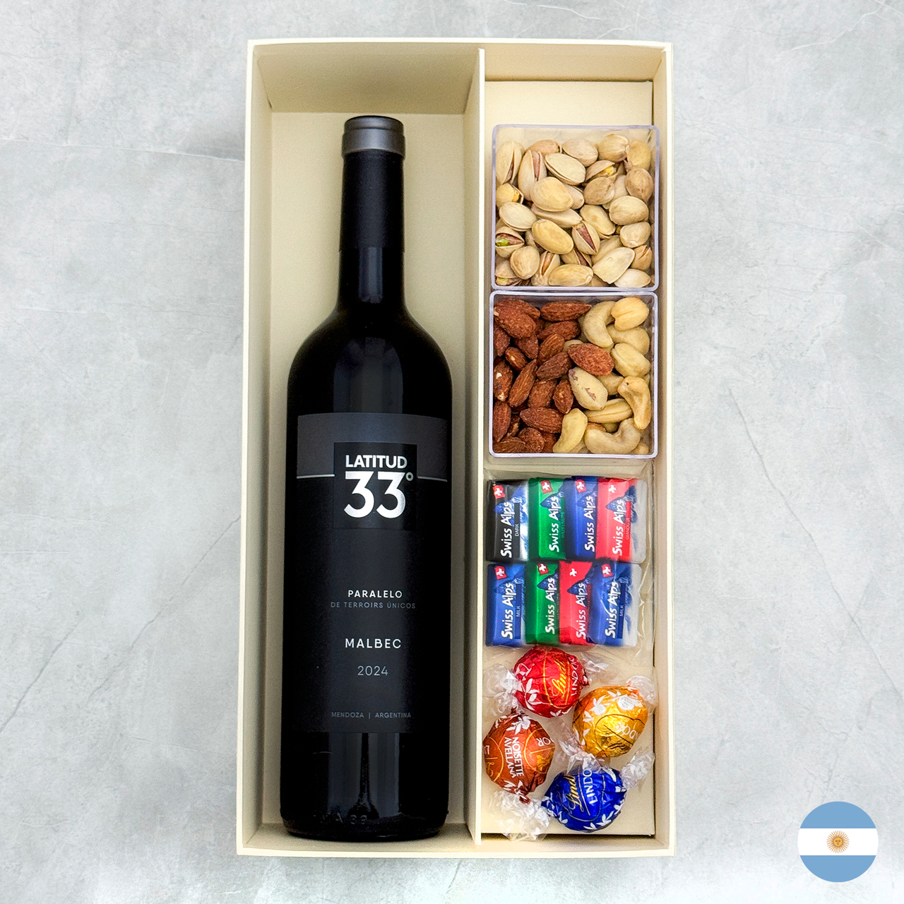 Latitude 33, Onde a terra é diferente. Os melhores vinhedos do Hemisfério Sul estão localizados numa faixa latitudinal muito reduzida entre os paralelos 32 e 38 onde encontramos microclimas especiais na América do Sul. Na Argentina localizado na província de Mendoza existe um lugar único situado exatamente na Latitud 33. Aroma de ameixa, cereja, framboesa e especiarias. Paladar frutado, bom corpo, taninos macios, acidez agradável.
